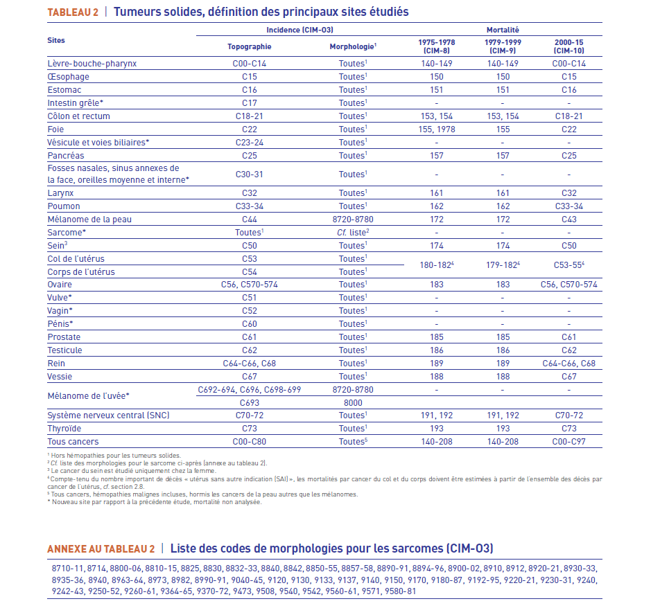 • selon la CIMO 3ème version, (classification utilisée par tous les registres de cancers)